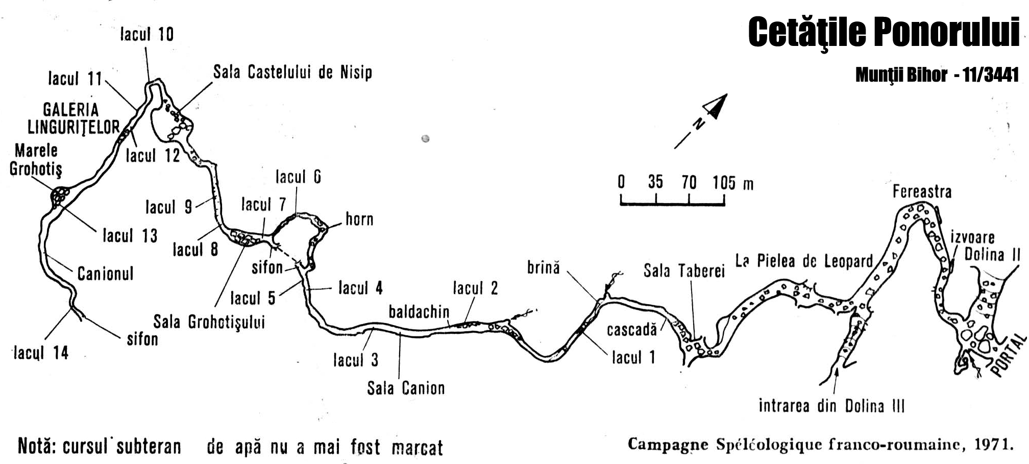 | Denumire | Adâncime | Lungime | Măsurători | Acces | Direcția de plonjare | Explorare | Note |