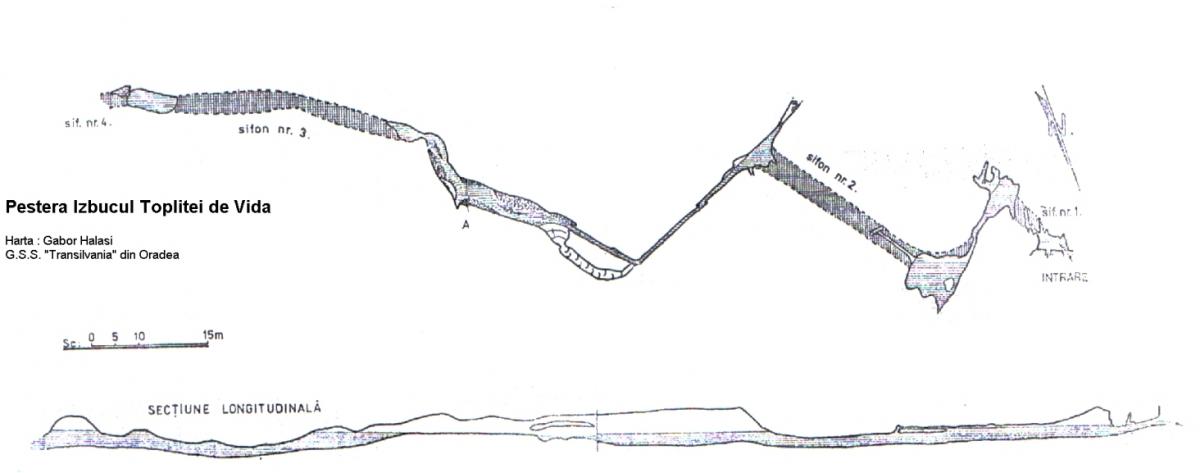 In august- 1983 T.Borodan printr-o nouă plonjare, - deja folosind aparatura de scufundare autonoma - pornind din Sala Estica gaseşte gura sifonului nr.2, prin care înaintează 7 m; pîna intr-un mic clopot de aer. In octombrie 1983 G.Halaşi pătrundei în al doilea sifon şi înain -teaza spre sud - sud est 40 m, la o adâncime de 2 - 3 m. Trece sifonul şi ajunge într-o diaclaza înalta, transversala sifonului. Spre dreapta pe uscat se poate înainta 10 - 12 m pină într-o sală înalta dezvoltata pe aceaşi diaciaza. In aprilie 1984 G.Halasi cu Gy.Birtalan explorează în continuare peştera, Trec de sifoanele nr.1 şi 2 şi în diaclaza de dincolo, spre stînga inaintează înot 35 m, pînă la galeria activă. Dupa o mica cascada activul se lărgeşte (6/4 m), iar dupa 50 m parcurs galeria se sifonează din nou. Al treilea sifon este la fel de lat ca şi al doilea şi înaintează tot la mică adîncime. Are 45/-5 m, după care urcă intr-o sală pe apă. După numai 15 m de spaţiu aerat explorarea s-a oprit în fata sifonului nr.4.
