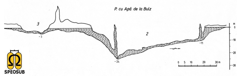 Din 1978, Peştera cu Apă de la Bulz a început să fie investigată de către membri Cercului de speologi amatori de 'a „CEPROMIN" - Cluj-Napoca care au descoperit şi cartat, în zona sifoanelor I şi II, un sistem de galerii fosile, superioare, de 629 m lungime, ceea ce face ca în prezent peştera să aibă, în total, 1177 m cartaţi.